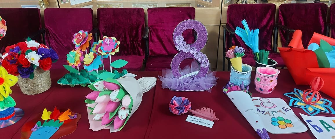 Накануне праздника посвящённого 8 марта, в школе-гимназия прошла выставка поделок